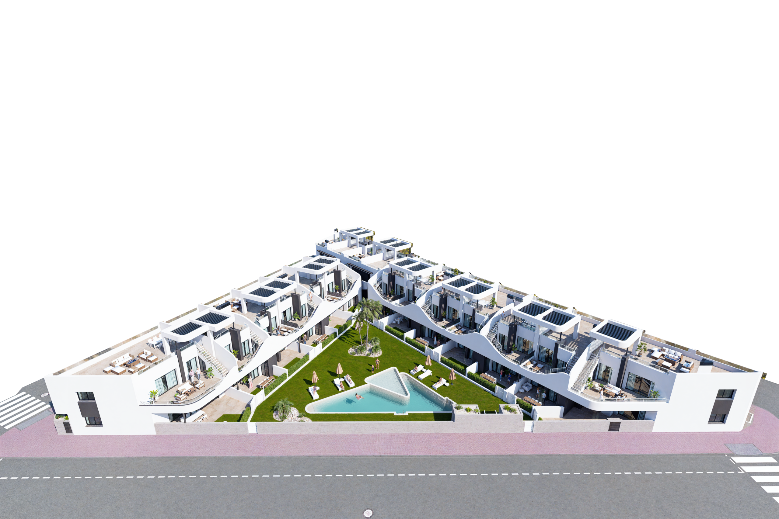 Résidence moderne avec extérieurs, piscine et soleil toute l’année, proche plage